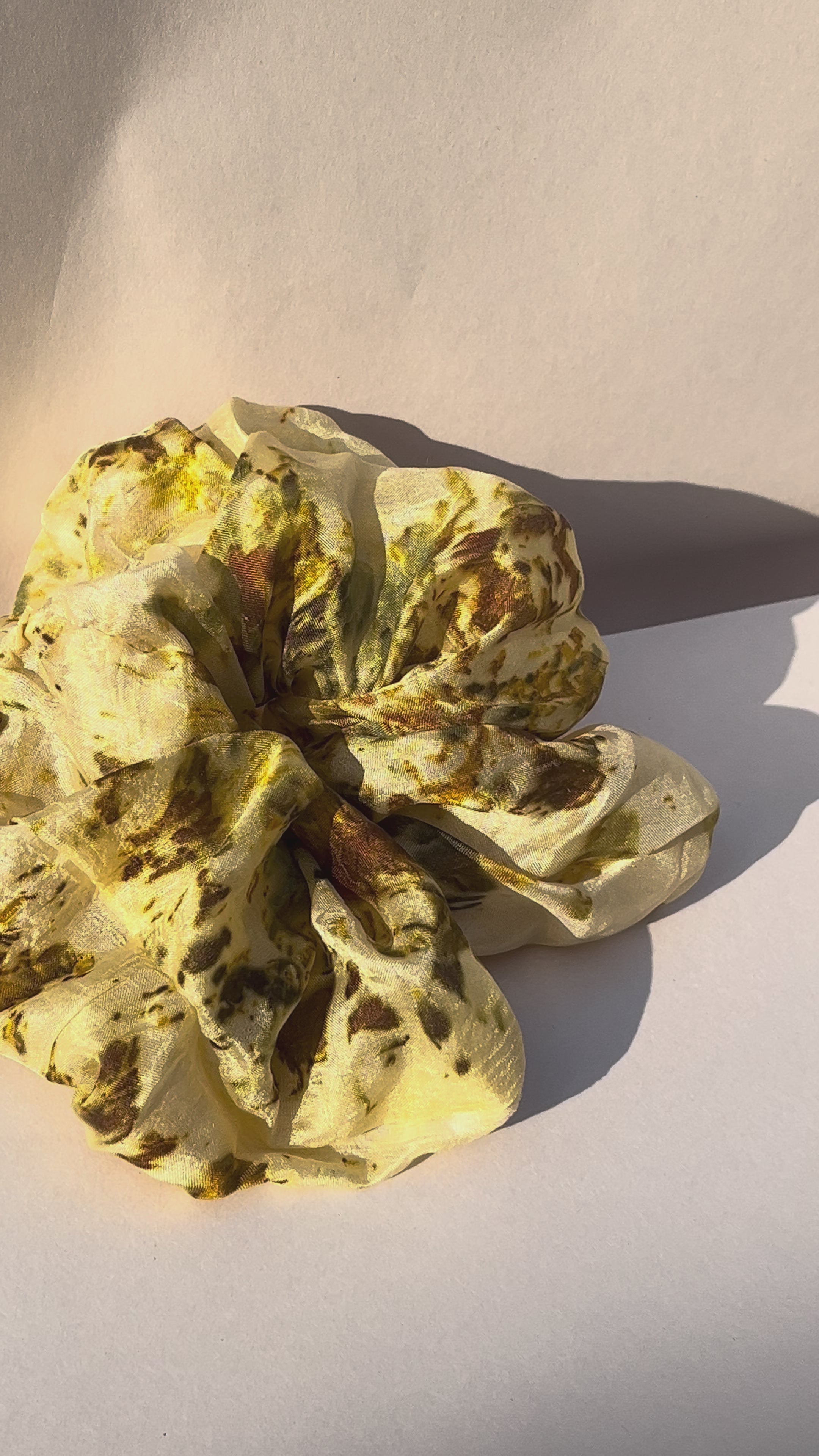 Ce chouchou en mousseline de soie bio a été teint à la main, en pleine conscience dans mon jardin avec des plantes que je cultive, récolte ou composte. Chaque pièce est différente, unique et je l'espère vous apportera beaucoup de bonheur.