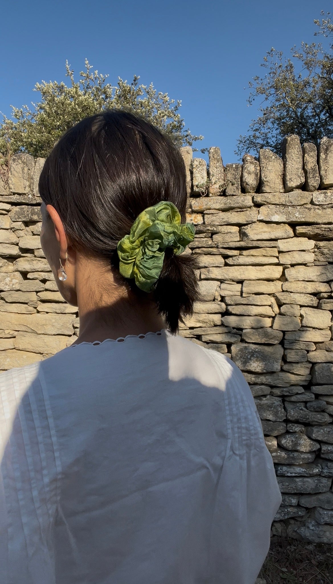 Ce chouchou en soie a été teint à la main, en pleine conscience dans mon jardin avec des plantes que je cultive, récolte ou composte. Chaque pièce est différente, unique et je l'espère vous apportera beaucoup de bonheur.