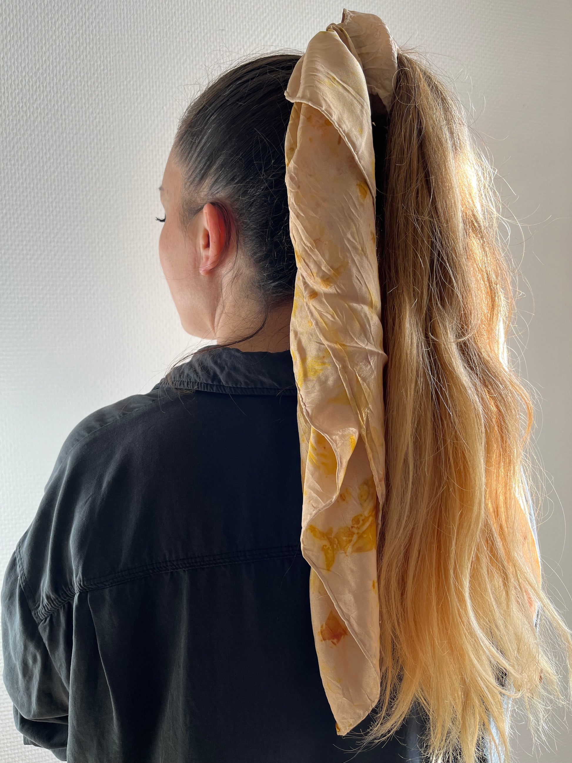 Ce foulard en soie a été teint à la main, en pleine conscience dans mon jardin avec des plantes que je cultive, récolte ou composte. Chaque pièce est différente, unique et je l'espère vous apportera beaucoup de bonheur.