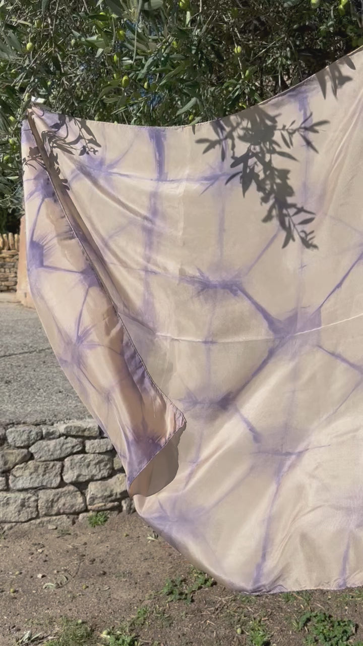 Ce foulard en soie a été teint à la main, en pleine conscience dans mon jardin avec des plantes que je cultive, récolte ou composte. Chaque pièce est différente, unique et je l'espère vous apportera beaucoup de bonheur.